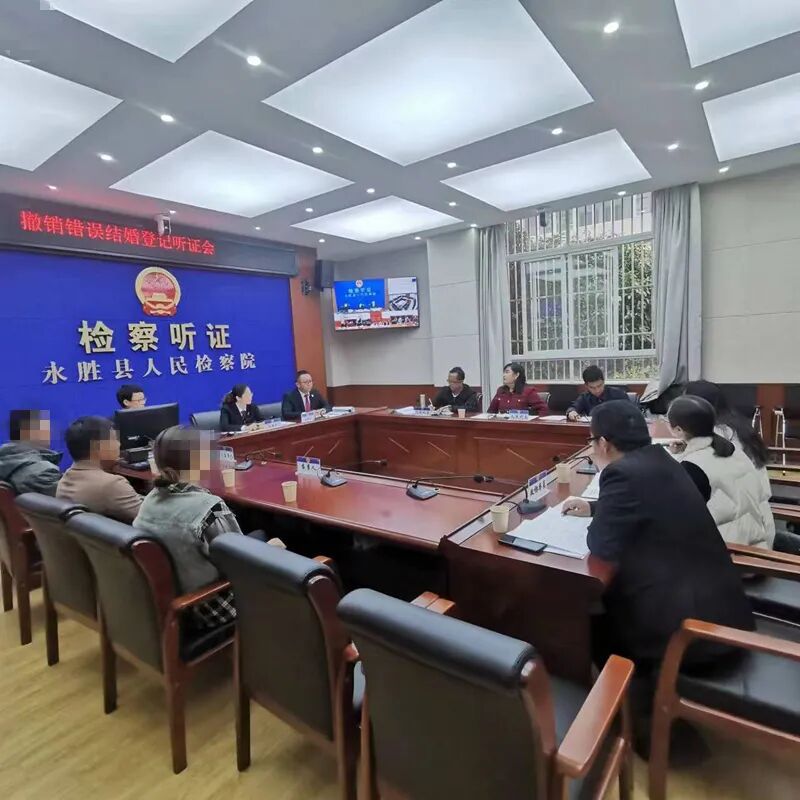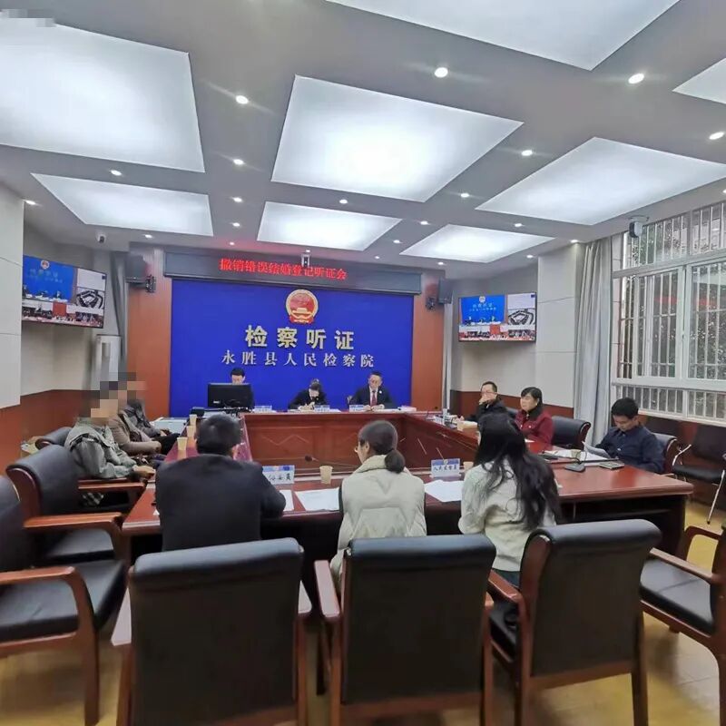 为妥善处理以冒名顶替或者弄虚作假方式办理婚姻登记引发的纠纷,维护婚姻登记秩序和当事人合法权益,节约行政成本和司法资源,促进行政争议实质性化解,2023年10月11日,永胜县人民检察院就一起冒名顶替登记结婚案件举行公开听证。会议邀请了部分人大代表、政协委员、人民监督员和律师参与。