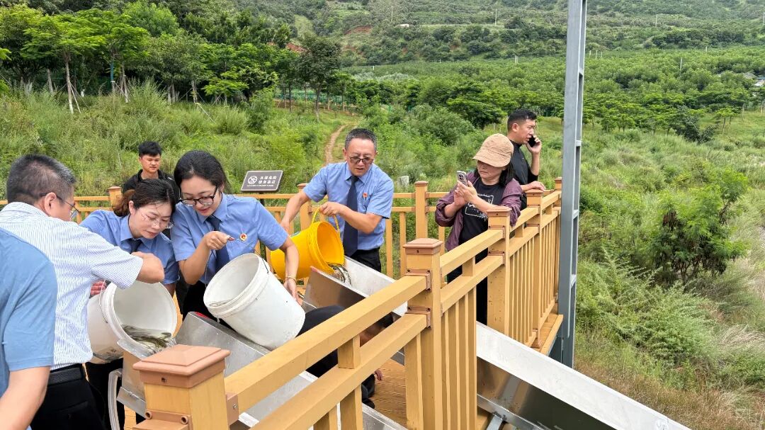 工作组开展巡湖行动,实地核查水质及沿岸生态状况,针对发现的河道占用等问题现场督办整改。巡湖行动后一行人在程海湖泊研究中心开展增殖放流活动,助力修复渔业资源、抑制藻类繁殖、维护水生态平衡。