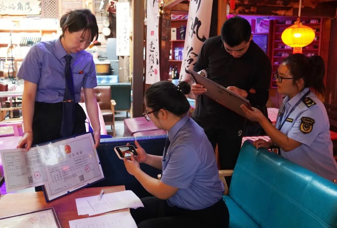 今年5月,古城区检察院对平台数据进行细致核查,通过摸排线索、召开联席会、实地调查走访、召开磋商会、制发检察建议等措施,督促相关部门依法履行监管职责。6月6日,古城区检察院联合区文旅局、区市场监管局等部门,紧盯丽江古城五一街、新华街、光义街三个核心区域,随机抽查并实地走访了10家酒吧、演艺吧。
