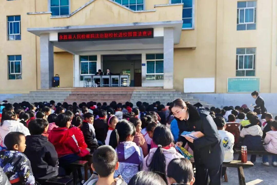 为增强青少年法治观念,预防和减少青少年违法犯罪,提升师生法治意识和自我保护能力,永胜县检察院在寒假前夕组织干警走进永胜县特殊教育学校、永胜县职业高级中学、鲁地拉镇中心小学等8所中小学,开展“法治进校园”系列宣传活动,为青少年平安度过假期筑牢法治与安全双重防线。