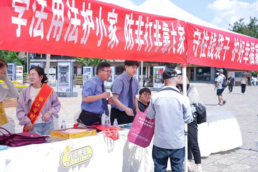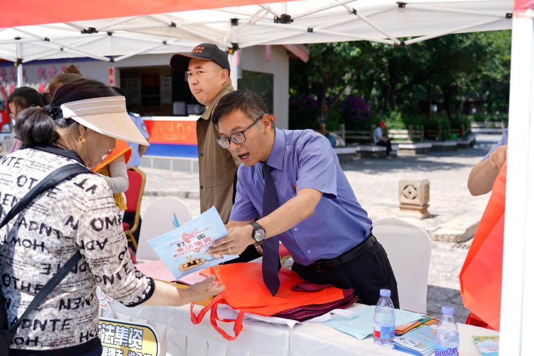 2025年6月是“防范非法金融活动宣传月”,今年宣传主题为:守住钱袋子,护好幸福家。为切实提升群众风险防范意识和识别能力,合力筑牢金融安全“防火墙”,6月13日下午,丽江市人民检察院连同丽江市公安局、市财政局、中国人民银行丽江市分行、国家金融监管总局丽江监管分局等多家单位,在丽江古城玉河广场共同开展防范非法集资宣传活动。