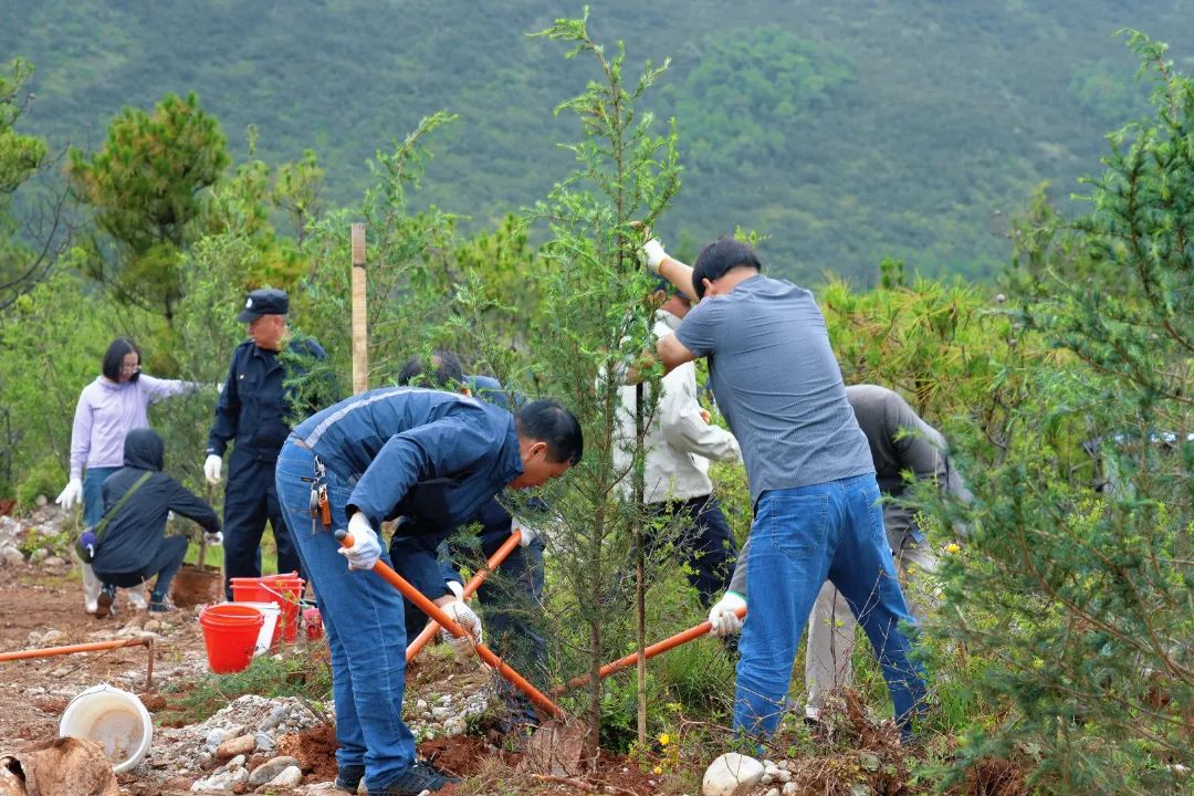任凭泥土沾满鞋裤,山间的微风带来丝丝凉意,干警们专注的身影和一棵棵新栽下、昂然挺立的小树苗,成为了这片土地最生动的风景。