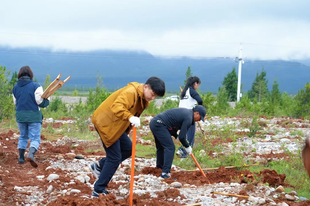 经过近半日的辛勤劳作,百余株承载着希望的新苗已在雪山脚下安家落户。