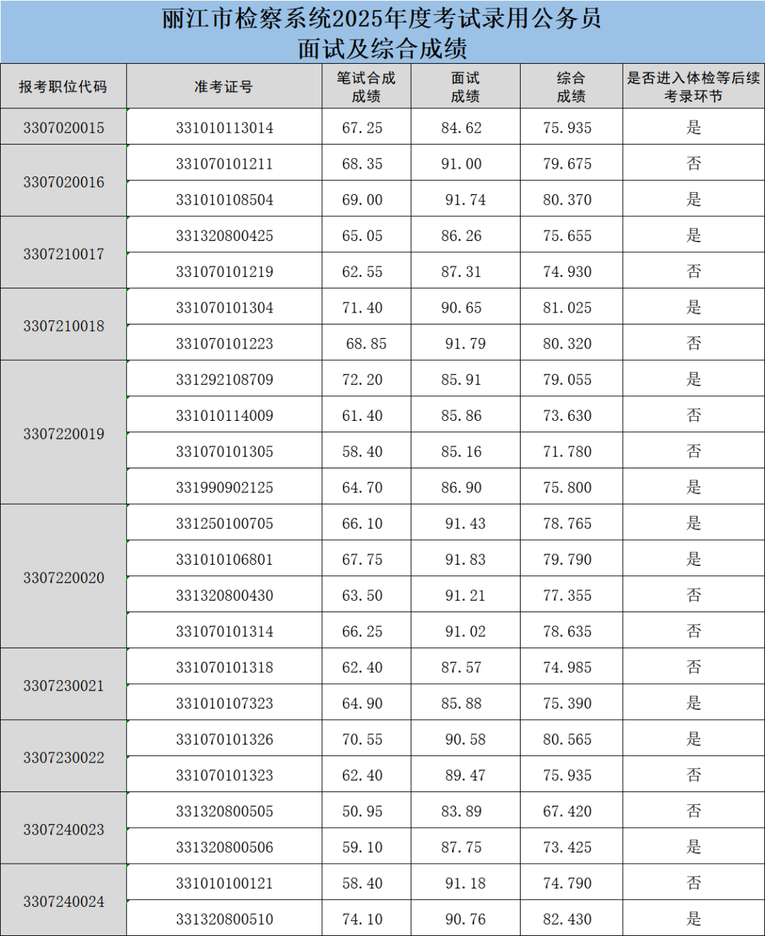 现将丽江市检察系统2025年度考试录用公务员(助理职位)成绩予以公布。
